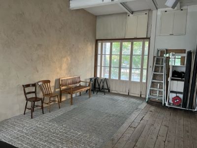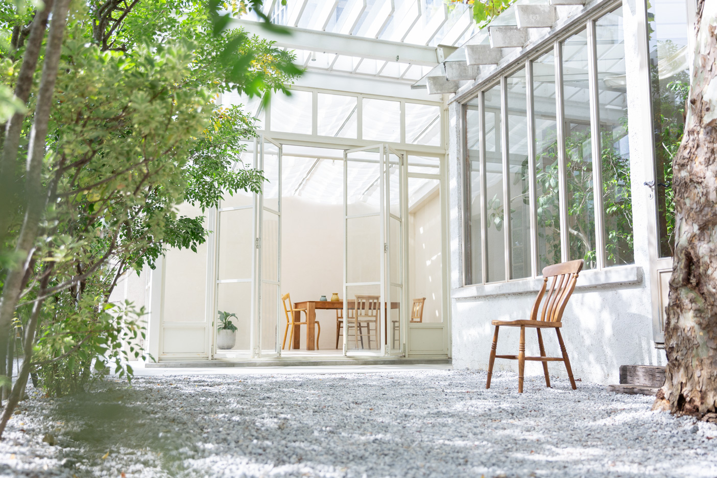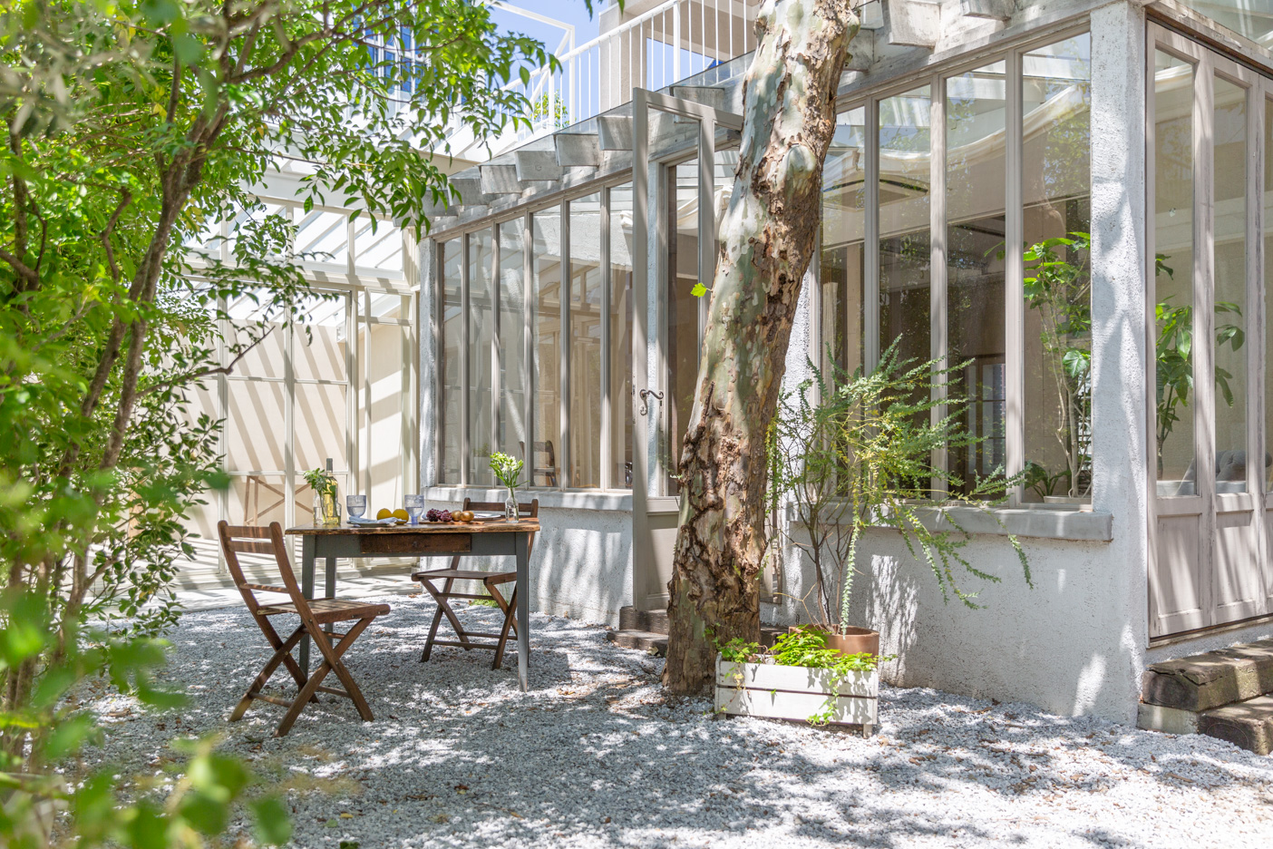 砂利が敷きつめられた庭には、大きなプラタナスの木が植えられています。涼しげな木陰でガーデンシーンの撮影はもちろん、カフェに見立てての撮影も可能です。 庭があるスタジオ一覧 >>