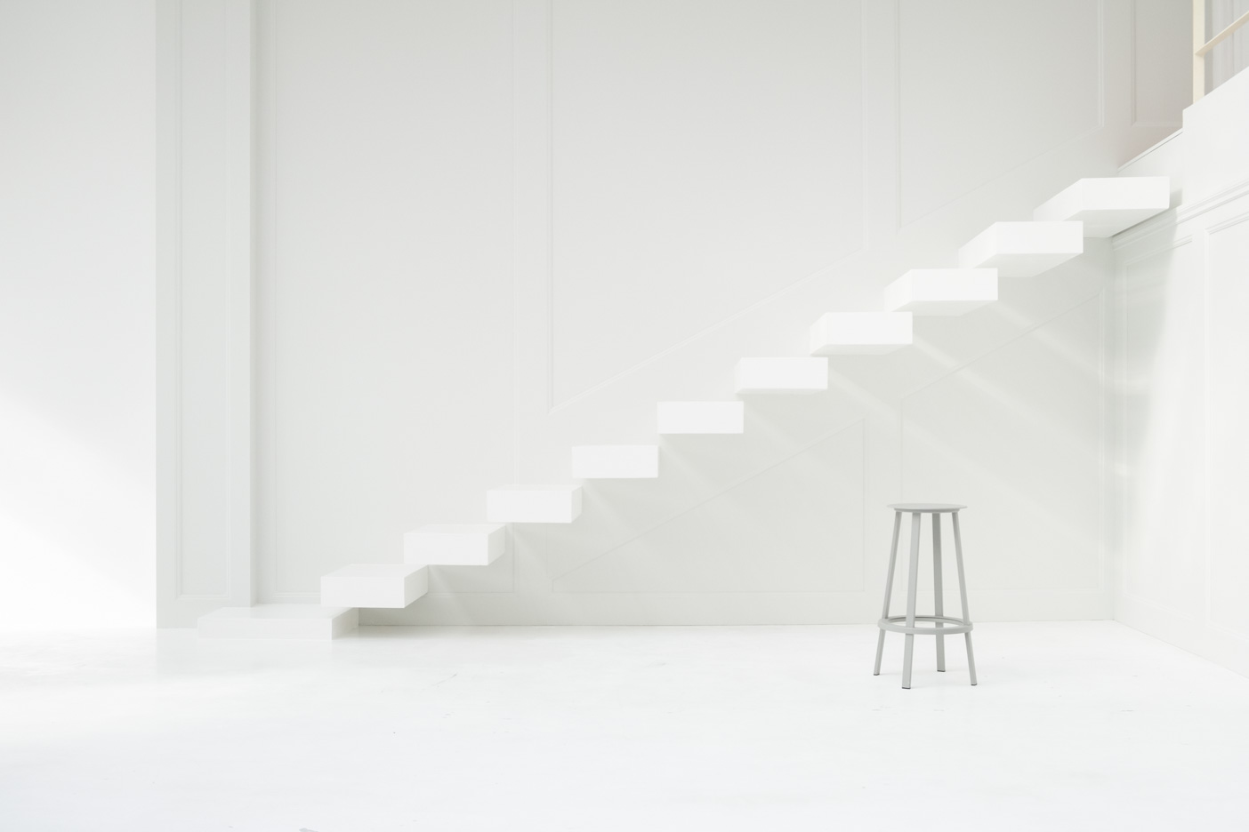 南西に向いた背の高い格子窓から美しい光が差し込みます。また壁からせり出した階段や装飾のある壁面は、背景に表情を加えてくれます。 白・オフ白の壁があるスタジオ一覧 >>
