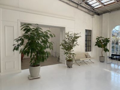 イメージを自由につくることができる光に包まれた大空間。広さ 15m×15m、天井一面から降り注ぐ光が白い床と壁に反射する明るいスタジオ。備え付けの遮光幕を用いて光のコントロールが可能。スタジオ中央の大きなスペースはシチュエーションにあわせたライティングや空間づくりのしやすさに定評があり、印象の異なる壁や窓、デザイナーズ家具も豊富です。