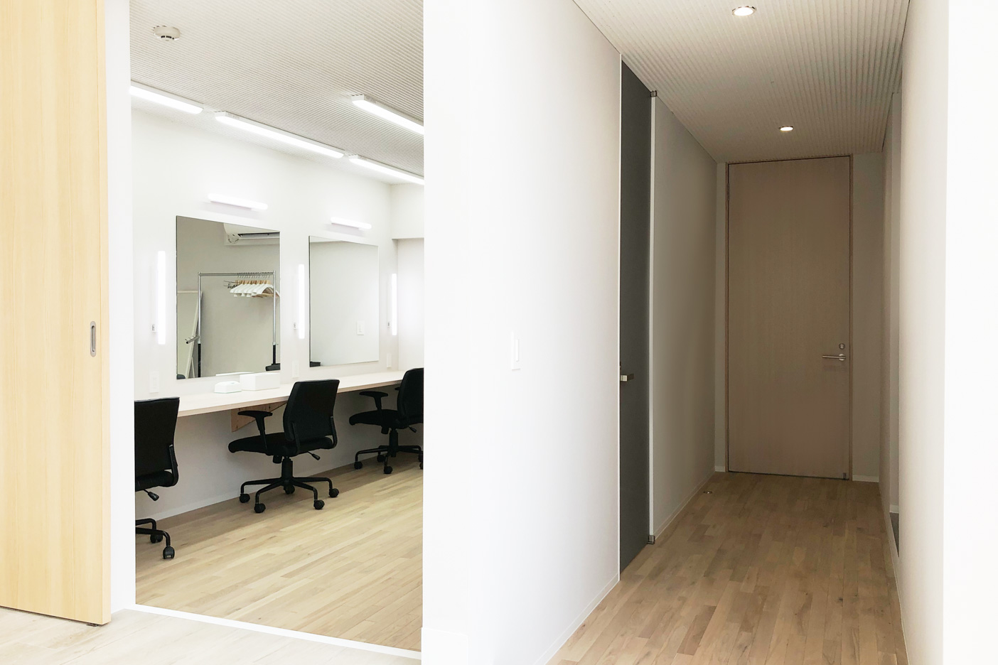 メイクアップルーム 備品:ハンガーラック×2、ハンガー×10、アイロン×1、姿見×1