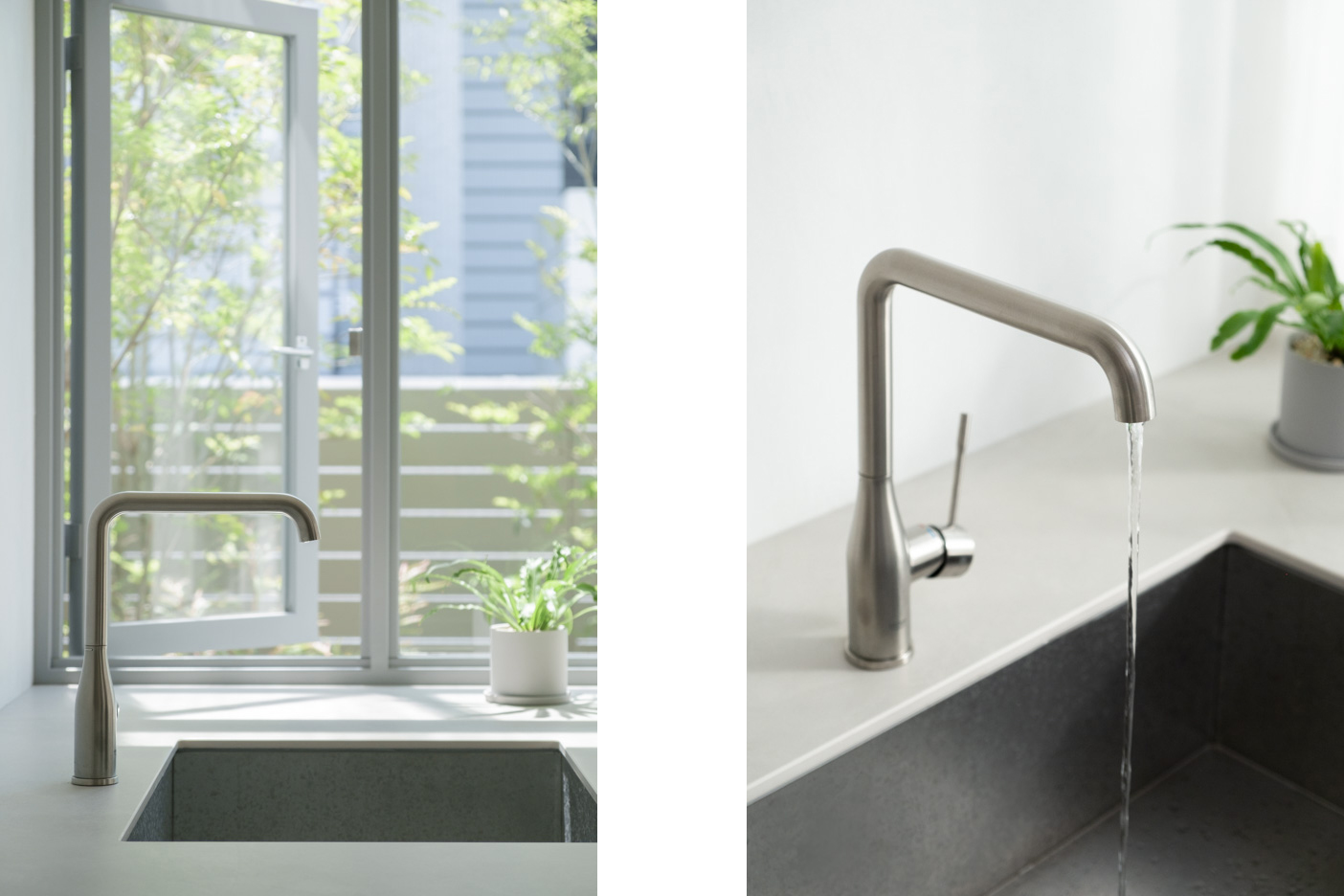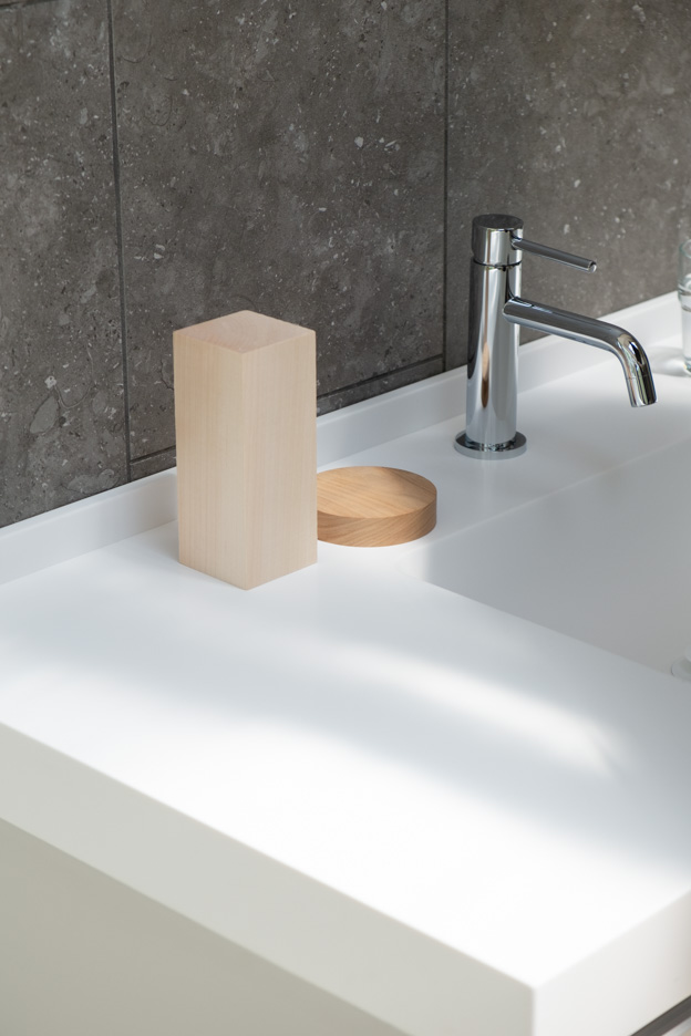 Room2の窓辺やRoom3など可動式の洗面台を移動して撮影ができます。天板が広いシンプルな洗面台です。 PASTIS&BASILグループ内 洗面バスルーム一覧 >>